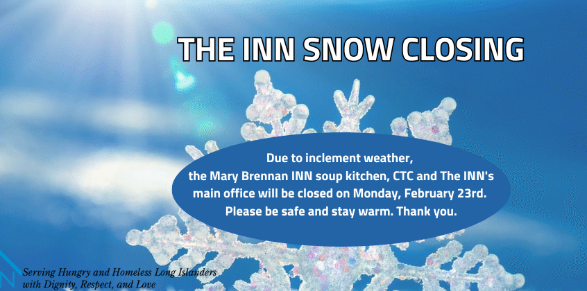 Due to a substantial snowstorm, The INN's main office, the soup kitchen and CTC will be closed on 2/23/26.